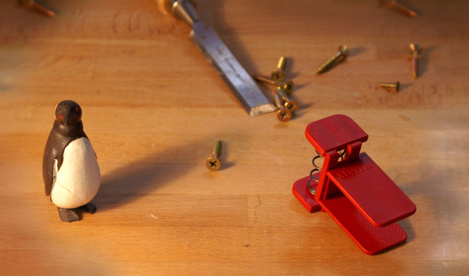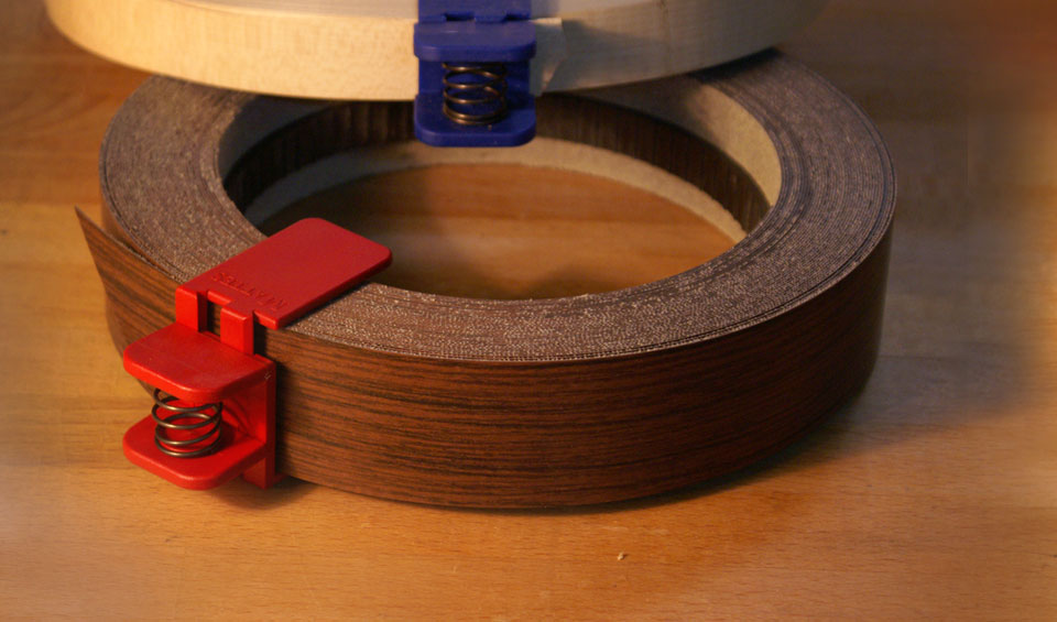 Es gibt sie doch. Die Dinge, die einem das tägliche Leben erleichtern. Eines dieser Dinge ist die neue, patentierte Mattes Kantenklammer. Sie beseitigt ein Ärgernis, das in fast jeder Tischlerei auftritt: den komplizierten und oft zeitraubenden Umgang mit angebrochenen Rollen von Kantenanleimern. Und zwar viel einfacher und wesentlich preisgünstiger als ein ausgeklügeltes Rollenmagazin.